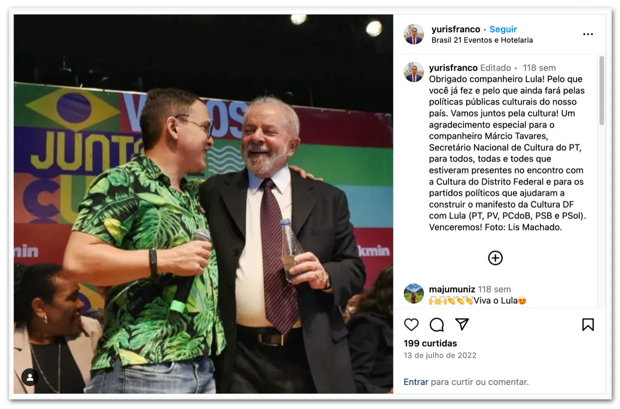 Outro ponto de destaque é que não houve conflito de interesse identificado pelas instâncias internas do Ministério (Controle Interno, Consultoria Jurídica e Corregedoria) em relação ao edital ou aos selecionados, incluindo o servidor Yuri Soares Franco, que não fazia parte da Associação Artística Mapati no momento do lançamento do edital e não participou do processo seletivo.