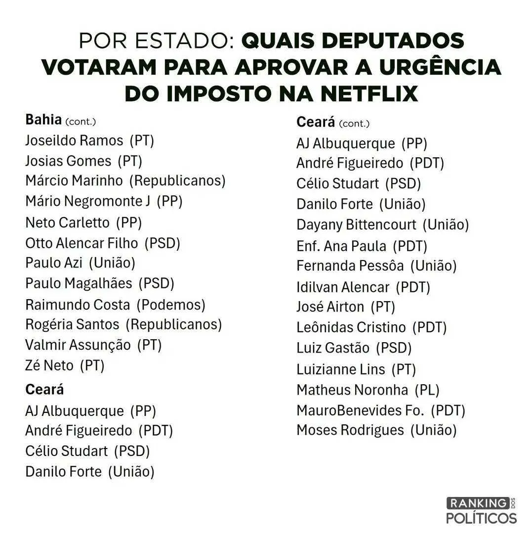O perfil Ranking dos Políticos listou os deputados que votaram a favor do requerimento. Veja abaixo.