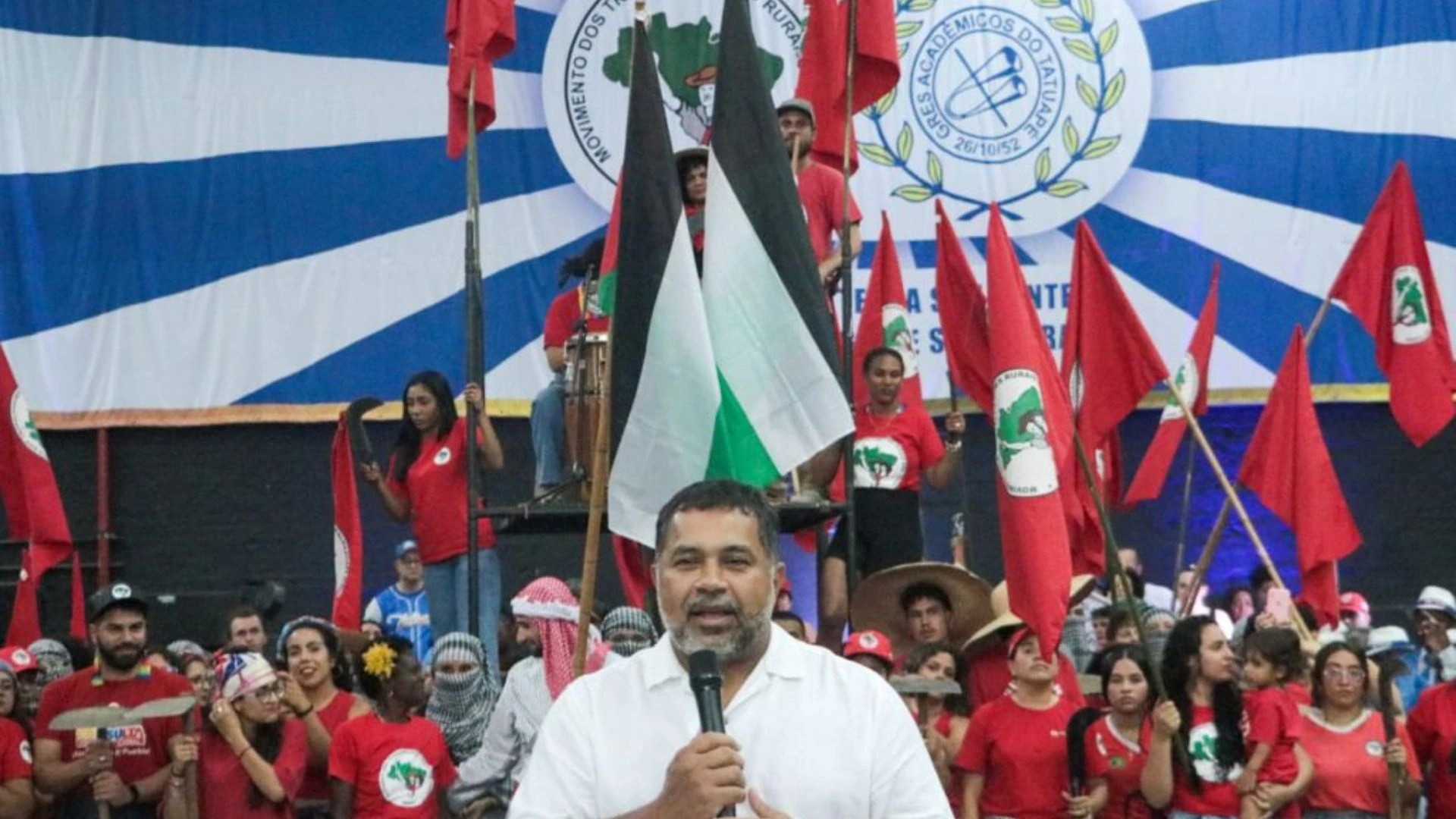 O Anhembi verá uma imagem incomum na madrugada de sábado (14): a bandeira vermelha do MST.