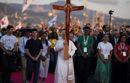 O atleta expôs um crucifixo que trazia em seu pescoço e o beijou em frente às câmeras enquanto conversava com um repórter.